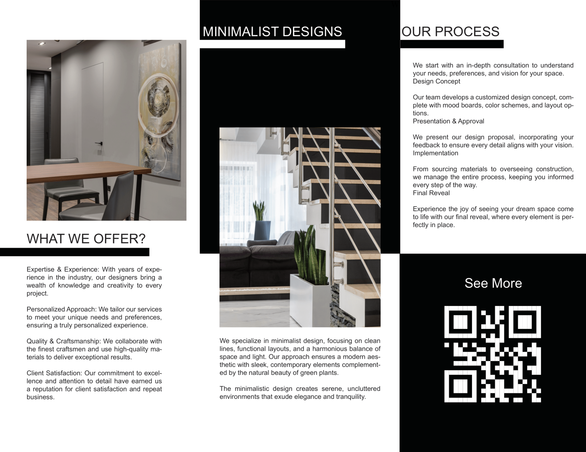 Here is an example of a brochure, created using Adobe Illustrator that demonstrates my design approach.